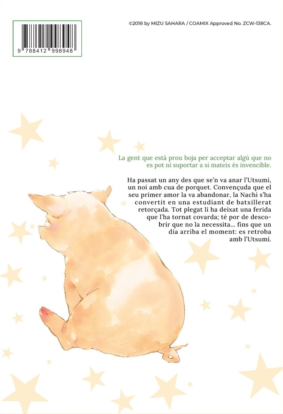 Ha passat un any des que se’n va anar l’Utsumi, un noi amb cua de porquet. Convençuda que el seu primer amor la va abandonar, la Nachi s’ha convertit en una estudiant de batxillerat retorçada. Tot plegat li ha deixat una ferida que l’ha tornat covarda; té por de descobrir que no la necessita… fins que un dia arriba el moment: es retroba amb l’Utsumi.